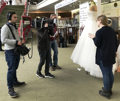Das SAT 1-Team beim Interview mit der Brautboutique Neumünster auf der Hochzeitsmesse Kiel - 23. FESTIVAL der HOCHZEIT - Christa Rahlf im Kieler Schloss.