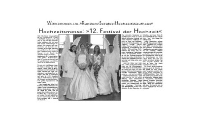 Hier einige kleine Ausschnitte aus der umfangreichen Presse-Berichterstattung von Schleswig-Holsteins größter, ältester und bekanntester Hochzeitsmesse - Hochzeitsmesse Kiel - FESTIVAL der HOCHZEIT - Christa Rahlf, der exclusivsten Hochzeitsmesse in Norddeutschland!
