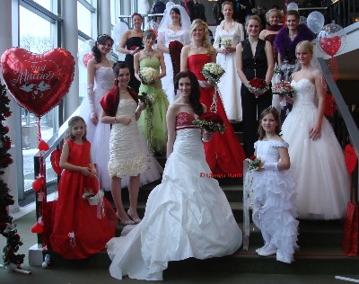 Ob die Braut eine traumhafte Brautrobe, kurz und peppig oder lang mit Schleppe, klassisch oder puristisch, ärmellos mit Jäckchen, schlicht und elegant in A-Linie oder verspielt mit Rüschen trägt und dazu einen Hut oder Schleier. Oder ob das Brautpaar mit einem Rolls Royce oder gar einer Stretchlimousine zum Traualtar fährt Antworten auf diese und andere Fragen bieten 90 Aussteller, darunter viele Brautausstatter mit der größten Auswahl an Brautmoden an einem Ort, Herrenausstatter, Floristen, Juweliere, Schmuck- und Einrichtungsdesigner zeigen was sie können und geben Rat zu Schuhen, Frisuren, Kosmetik, Aussteuer-Wäsche, Hochzeitstorten, Hochzeitsbuffets, Hochzeitsfotos und -reisen, Glas, Geschirr, Porzellan, und, Verpackungsservice, die Organisation des Festes von der Hochzeits-Einladung bis zum Disc-Jockey bei der Hochzeits-Feté und vieles andere mehr.